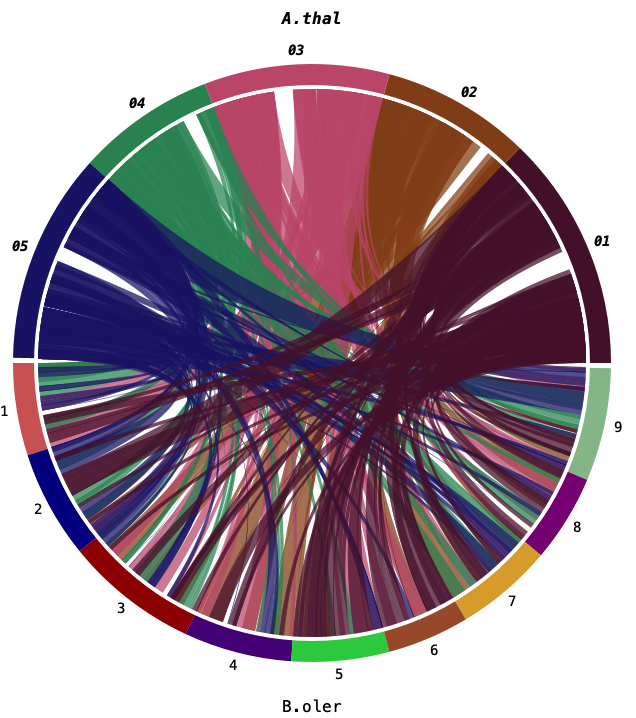 Compute the synteny between two sequences genomes. Query and view two or more genomes at a time.