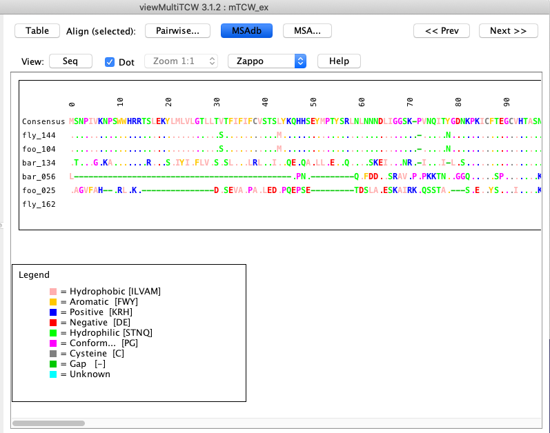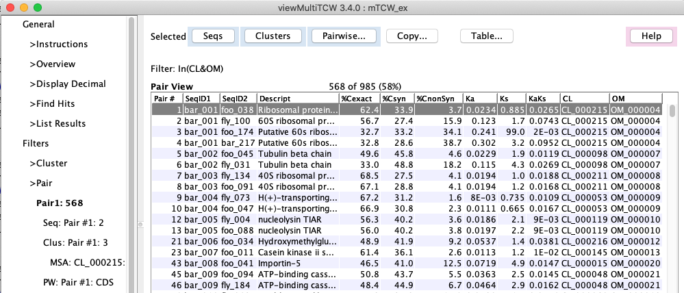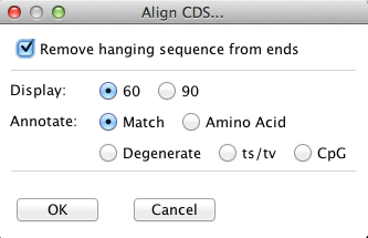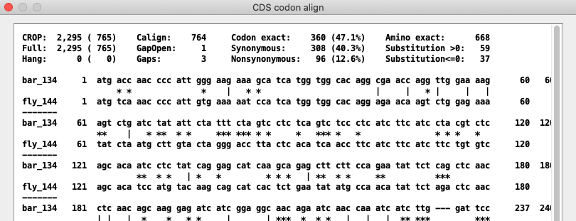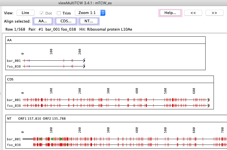 AA, CDS and NT alignments of a pair. The text alignment can be viewed by clicking the AA, CDS or NT buttons.