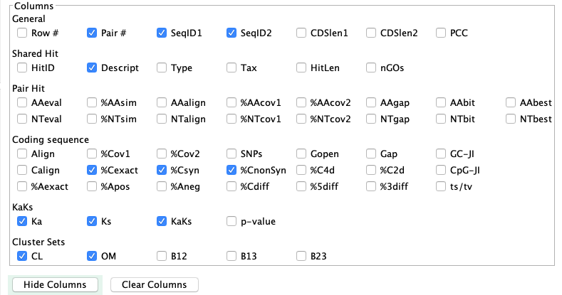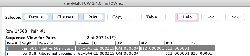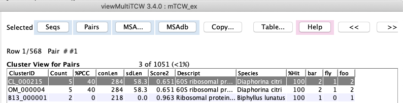 → Cluster: the table of clusters for the pair will be shown (see lower right image).