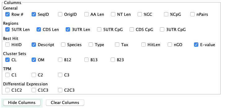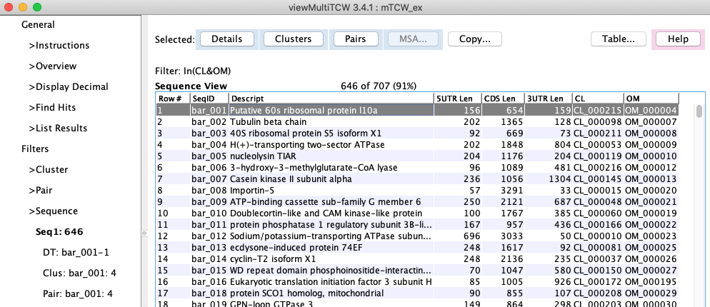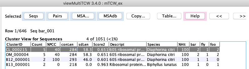 → Cluster: the table of clusters for the sequence will be shown (see lower right image).