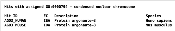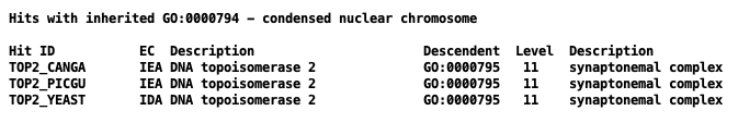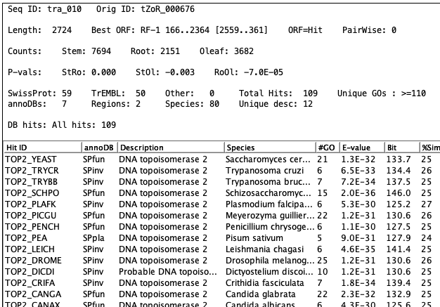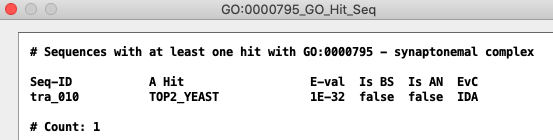 Each sequence may have many hits with this GO; only the one with the best e-value is shown.