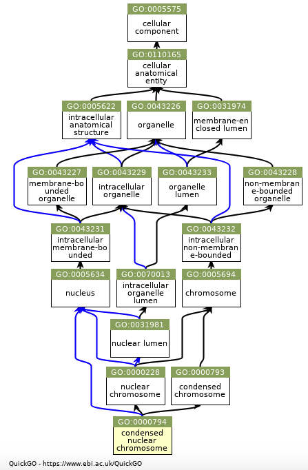 The ancestor condensed chromosome and nuclear chromosome are the parents of GO:0000794;