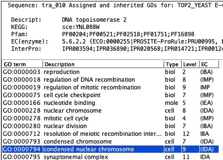 Fig 6 lists tra_010 as a sequence of GO:0000794.