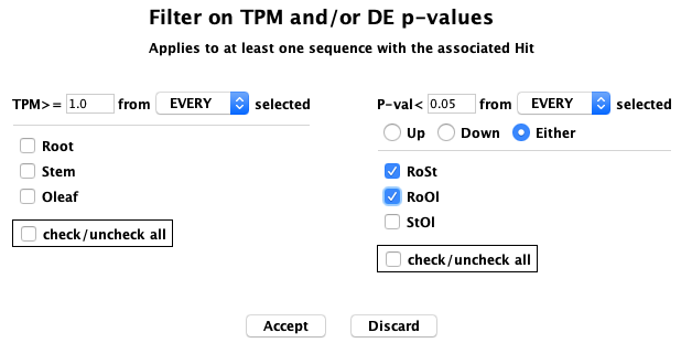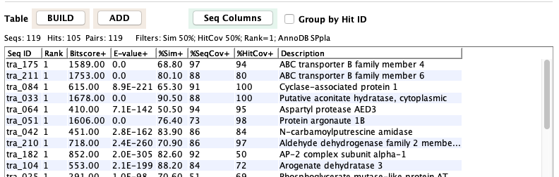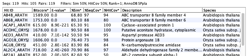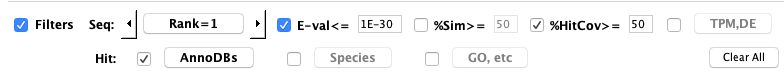 Filters Seq: This row of options apply to the sequences that align to the annoDB hit (generally protein, but can be nucleotide).