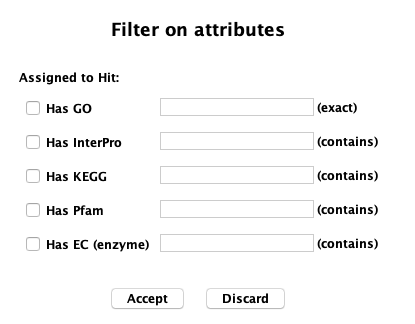 Filters Hit: This row of options apply to the annotation assigned to the annoDB hit.