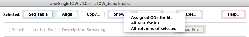 but writes to file the GO info or GO IDs; the GO IDs can be loaded in the GO Basic panel