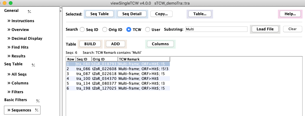 One or more sequence can be selected followed by Seq Table and they will be shown in the main Sequence table.